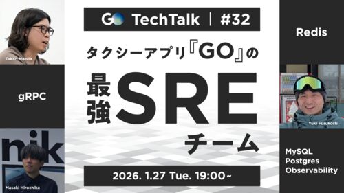 こんにちは!バックエンドエンジニア兼技術広報担当のもぎです。2026年1月27日に、「GO TechTalk #32 タクシーアプリ『GO』の最強SREチーム」(connpass)を開催しました! この記事では、イベント当日の内容を簡単に紹介します。 GO TechTalkとは? GO Tech…